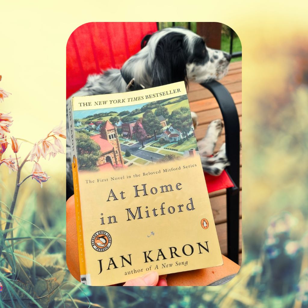 This sweet book, At Home in Mitford by Jan Karon, is not a normal book pick for me. I was drawn to the cozy, small town look of the cover on a book display as I was checking out at my library and added it to my book pile to take home.