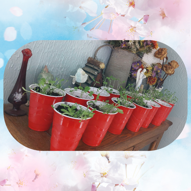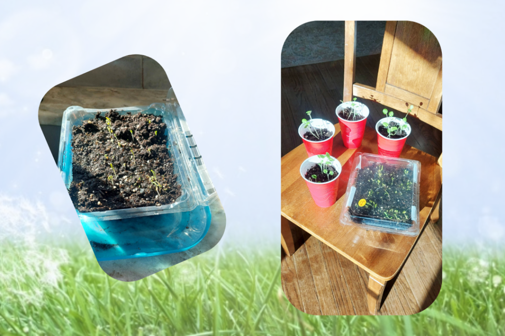 Once the seedlings outgrew the containers, I carefully moved them into plastic cups and added more soil to support their growth.