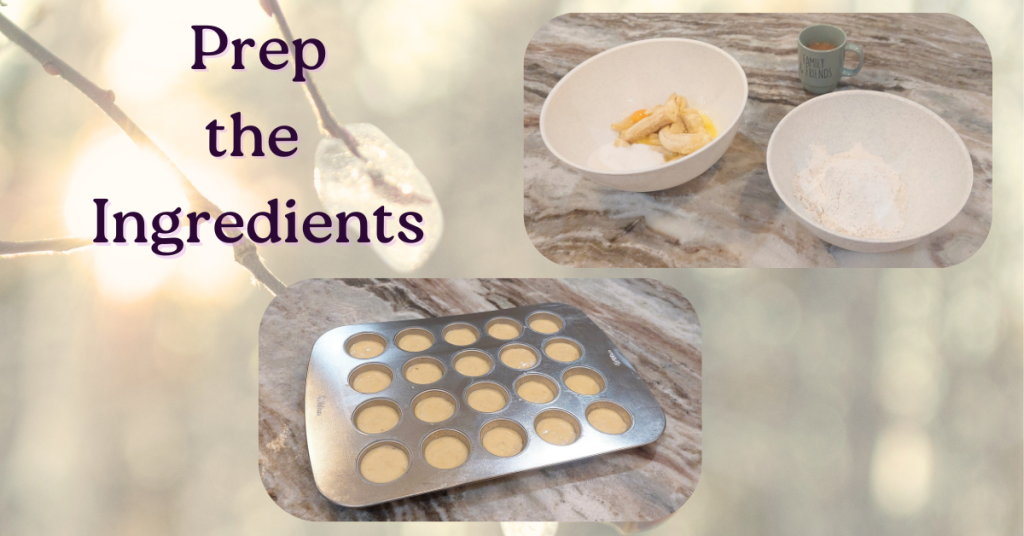 - Add the Flour mixture to the Banana mixture and beat until smooth. Spoon into Mini-Muffin Pans (2/3 full).