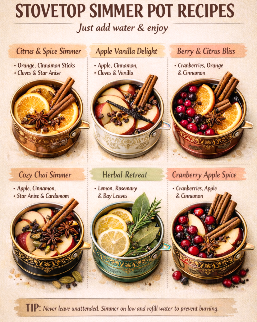 A stovetop simmer pot isnโ€™t just about how a home smells. Itโ€™s about how it feels. Cozy. Peaceful. Welcoming. Itโ€™s a reminder that comfort can be simple and that small, thoughtful gestures often mean the most.